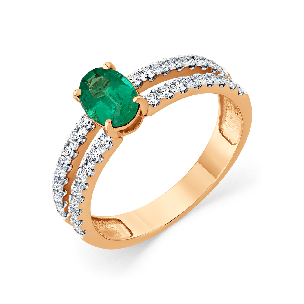 Кольцо красное золото 585 пробы со вставками изумруд н., бриллиант арт. 1-109342-00-01