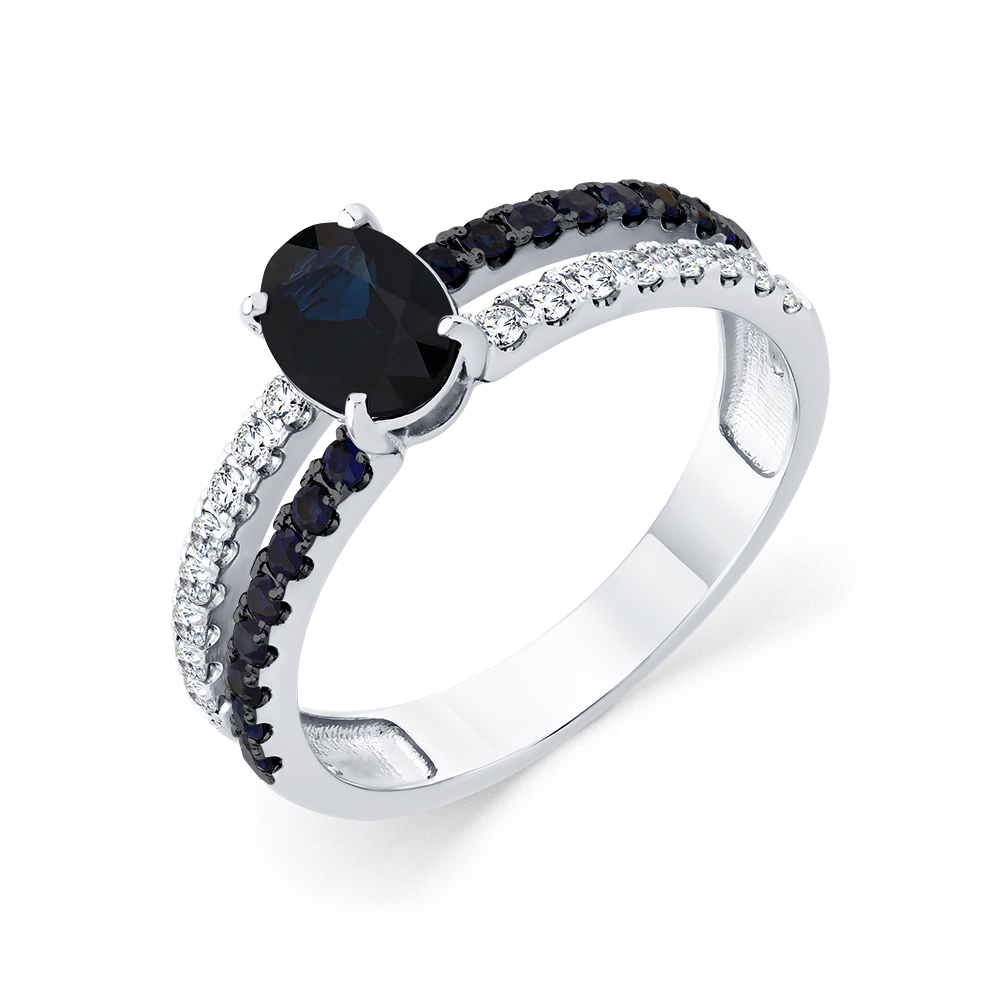Кольцо белое золото 585 пробы со вставками сапфир н., бриллиант арт. 1-209342-01-02