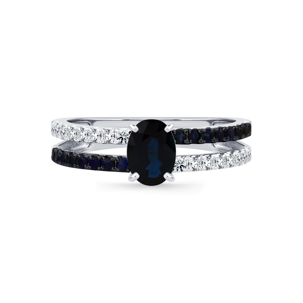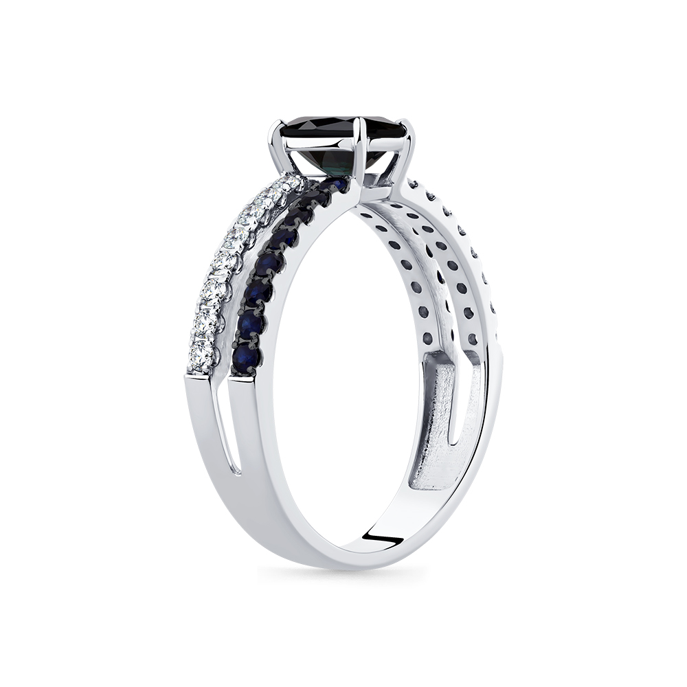 Кольцо белое золото 585 пробы со вставками сапфир н., бриллиант арт. 1-209342-01-02