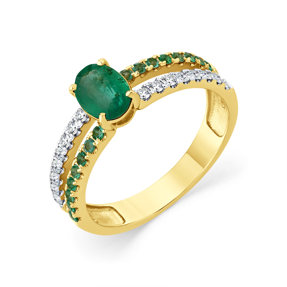 Кольцо жёлтое золото 585 пробы со вставками изумруд н., бриллиант арт. 1-309342-01-01