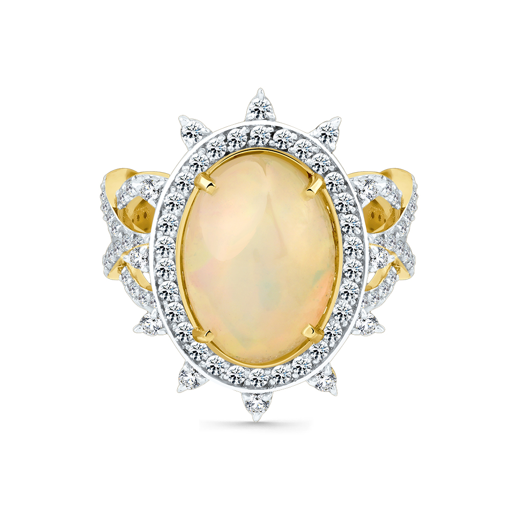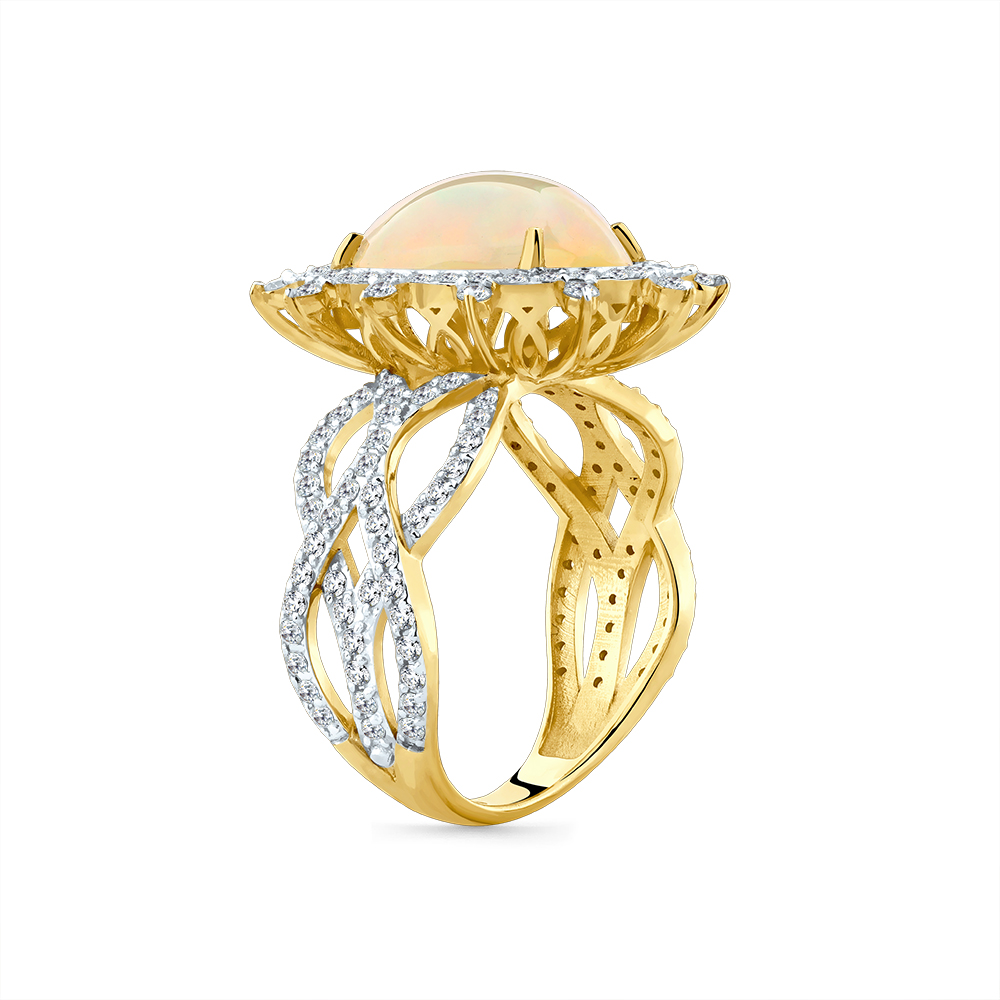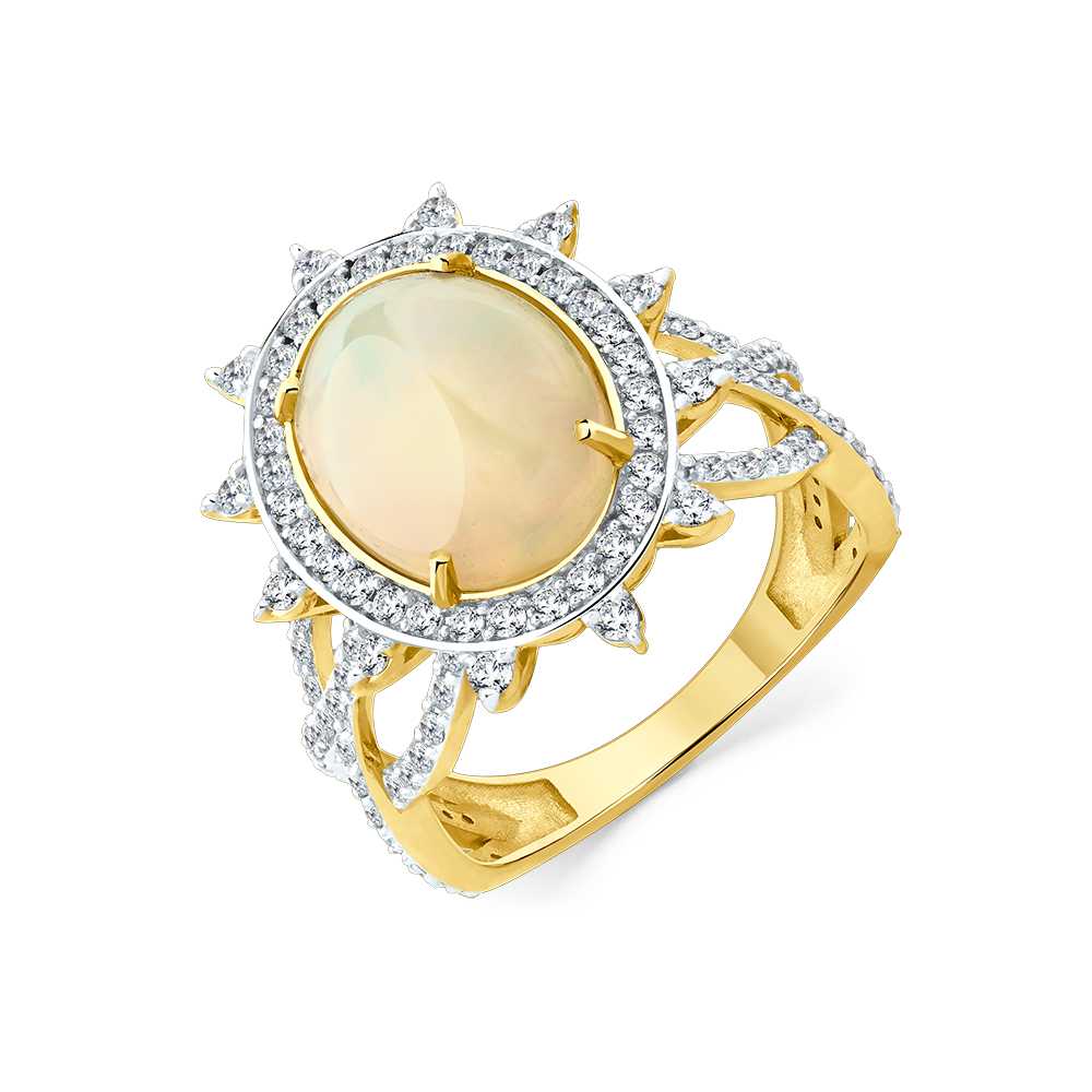 Кольцо жёлтое золото 585 пробы со вставками опал, бриллиант арт. 1-309352-00-36