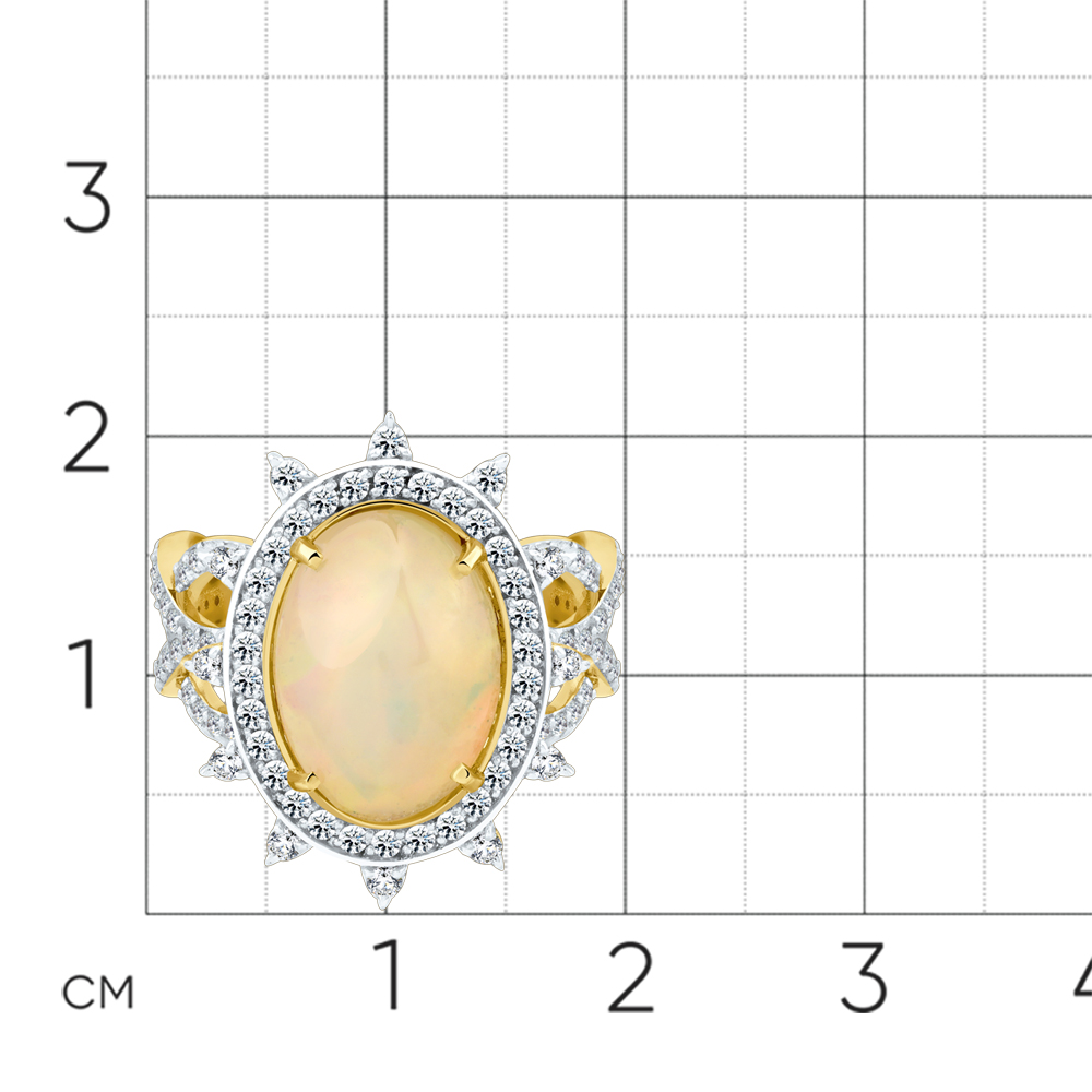 Кольцо жёлтое золото 585 пробы со вставками опал, бриллиант