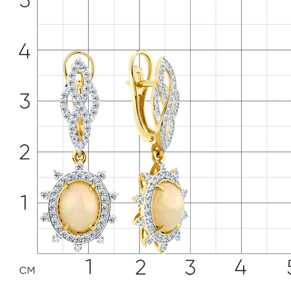 Серьги жёлтое золото 585 пробы со вставками опал, бриллиант арт. 2-309352-00-36