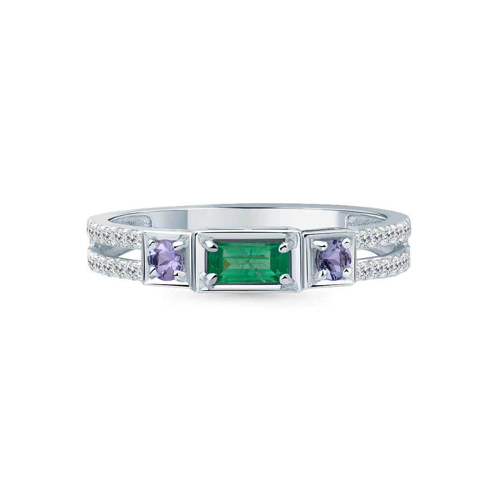 Кольцо со вставками изумруд н., бриллиант, танзанит арт. 1-209228-70-57