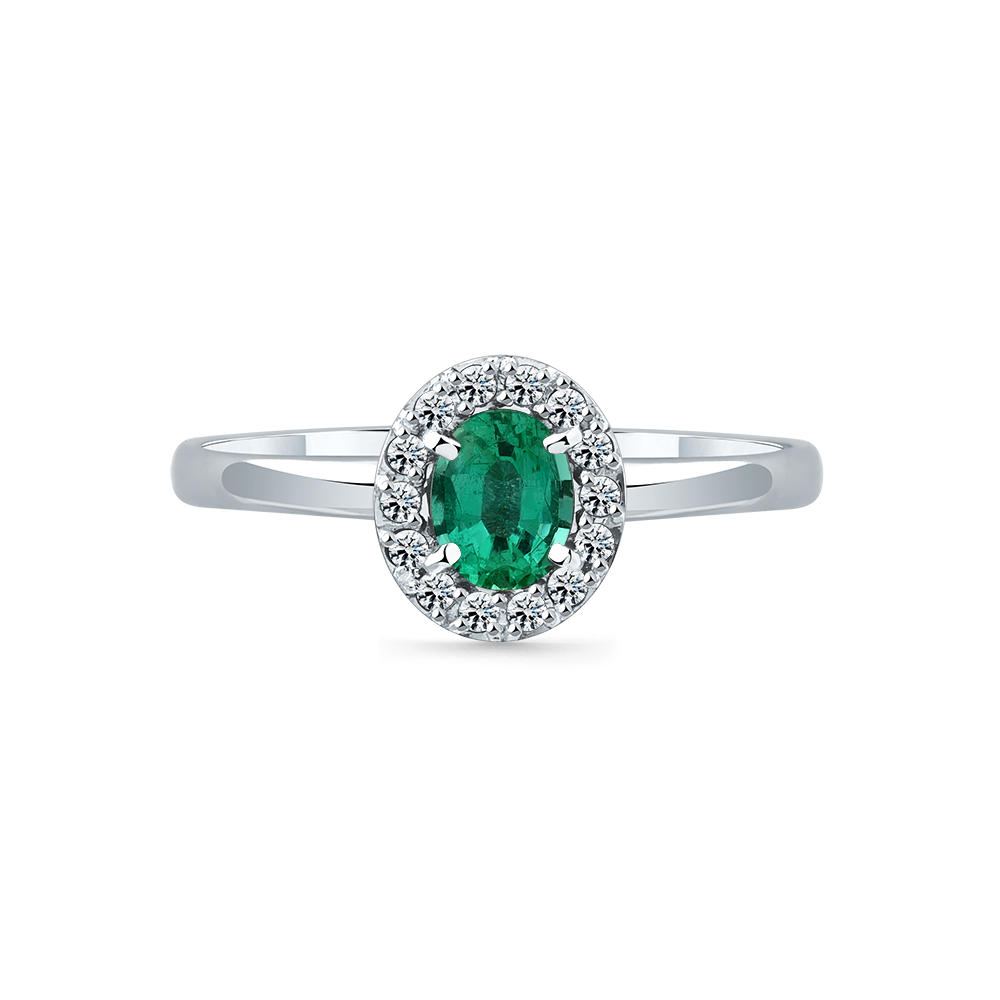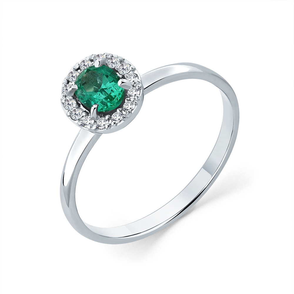 Кольцо белое золото 585 пробы со вставками изумруд н., бриллиант арт. 1-209328-00-01