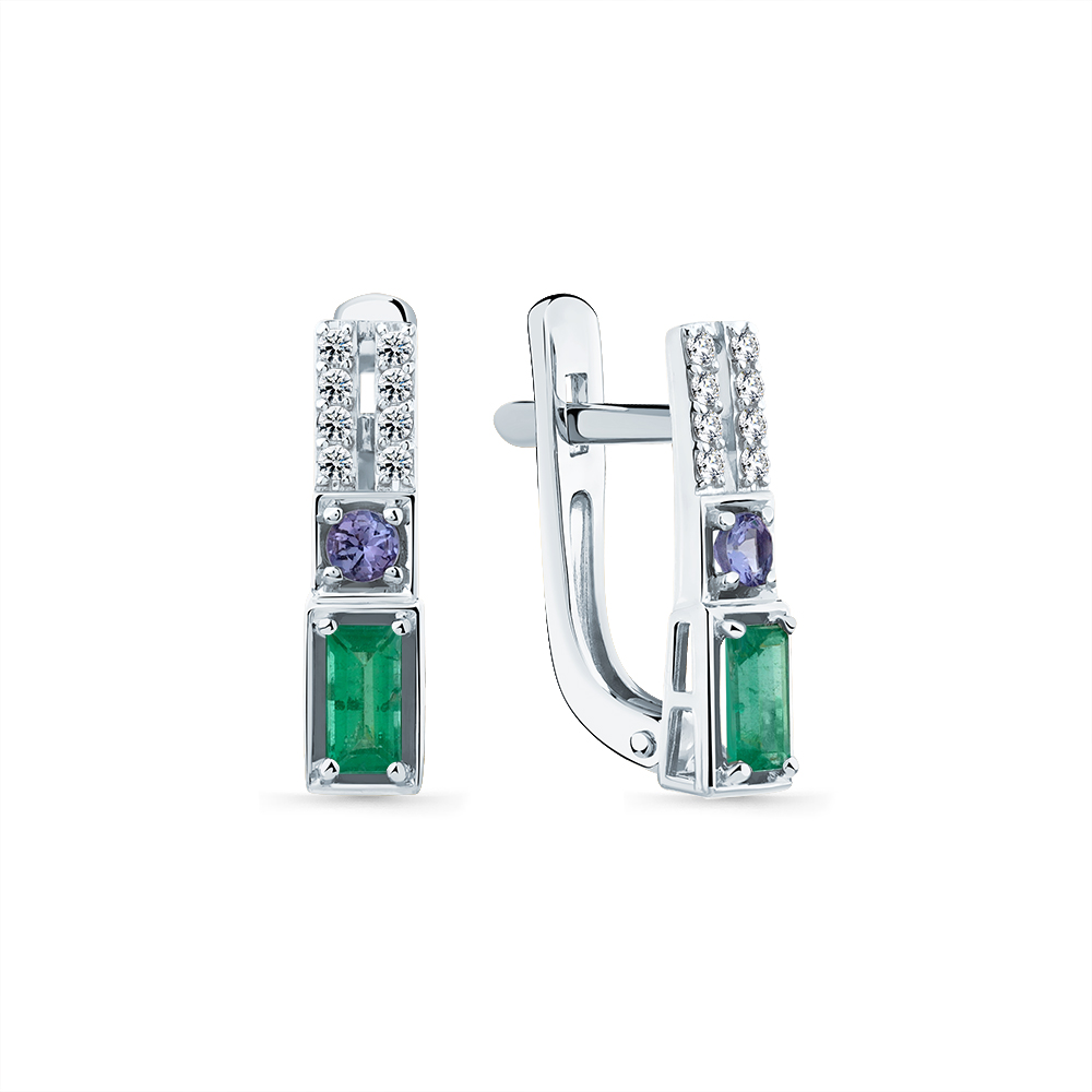 Серьги со вставками изумруд н., танзанит, бриллиант арт. 2-209228-70-57