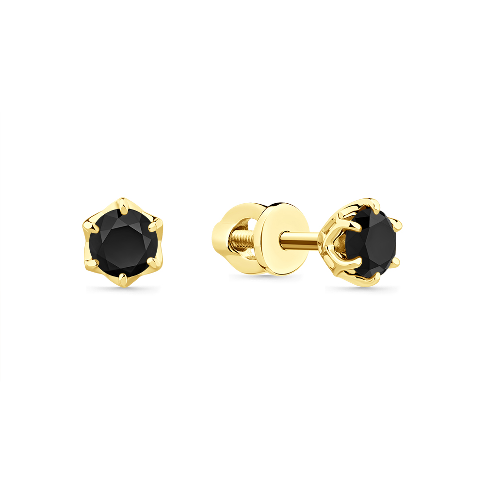 Серьга жёлтое золото 585 пробы со вставкой бриллиант черный арт. 2-302019-03-48