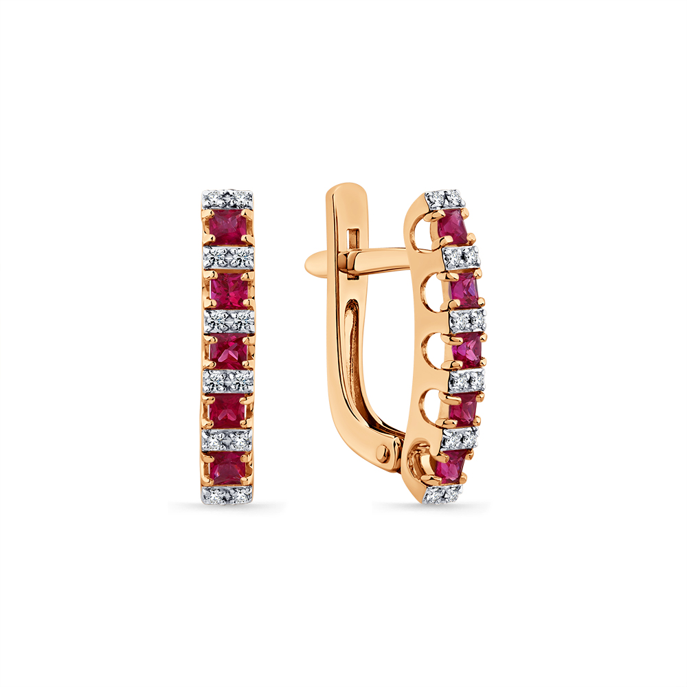 Серьги красное золото 585 пробы со вставками рубин н., бриллиант арт. 2-109249-70-03