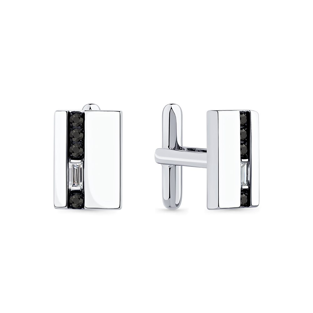 Запонки белое золото 585 пробы со вставками бриллиант черный, бриллиант