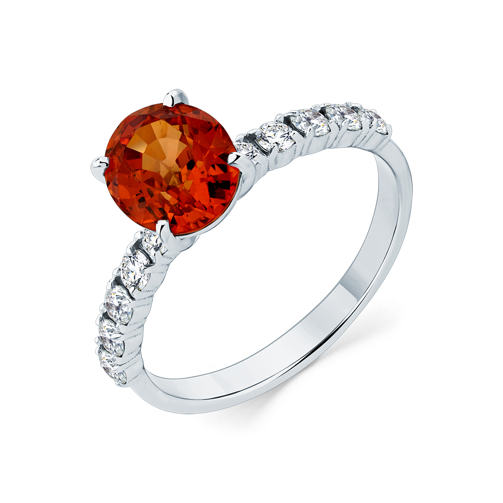 Кольцо белое золото 585 пробы со вставками сапфир облагороженный оранжевый, бриллиант