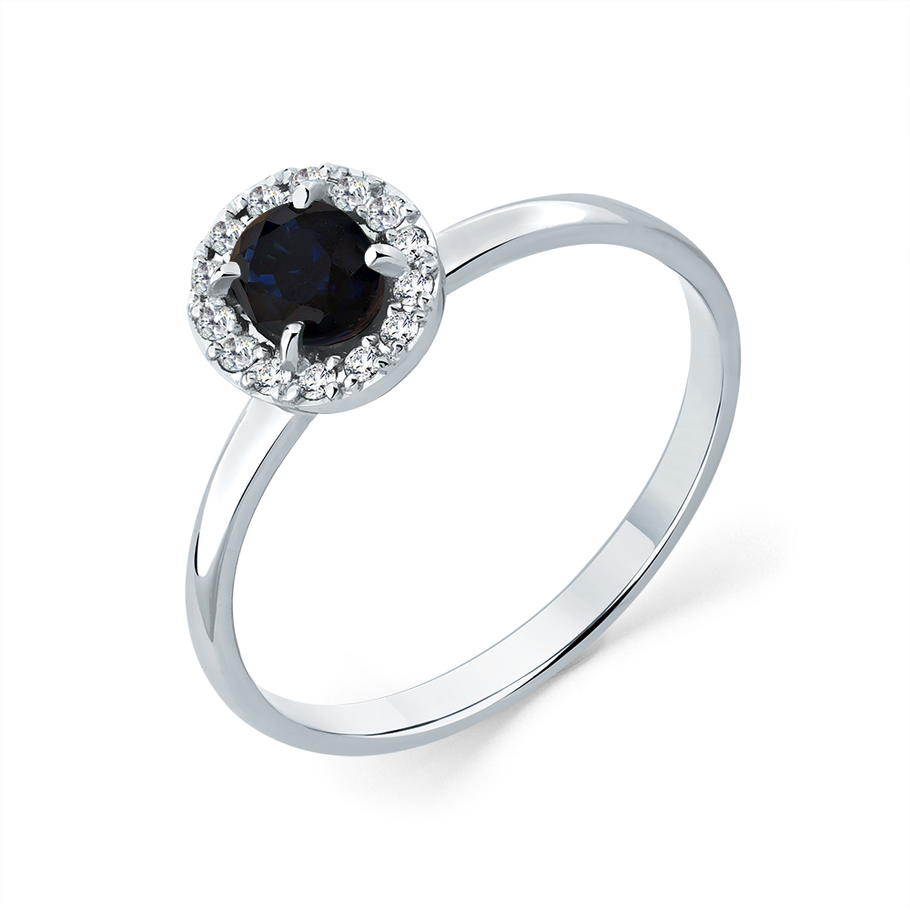 Кольцо белое золото 585 пробы со вставками сапфир н., бриллиант арт. 1-209328-00-02