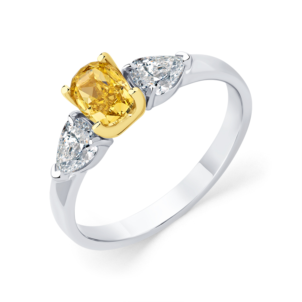 Кольцо жёлтое/белое золото 585 пробы со вставками бриллиант желтый, бриллиант арт. 1-509357-01-55