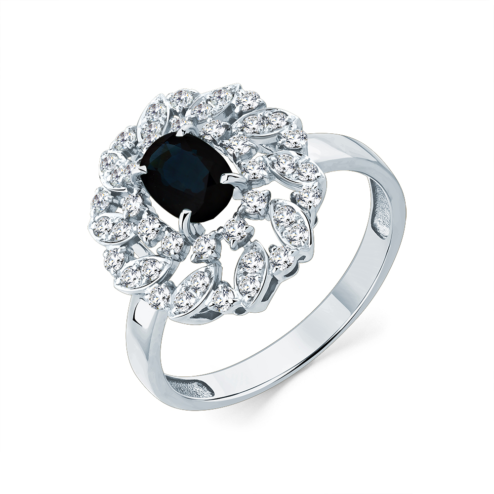 Кольцо белое золото 585 пробы со вставками сапфир н., бриллиант