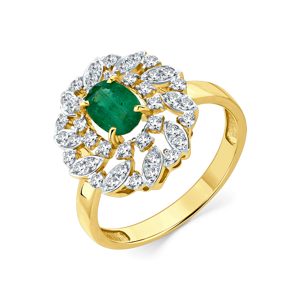 Кольцо жёлтое золото 585 пробы со вставками изумруд н., бриллиант арт. 1-309340-00-01