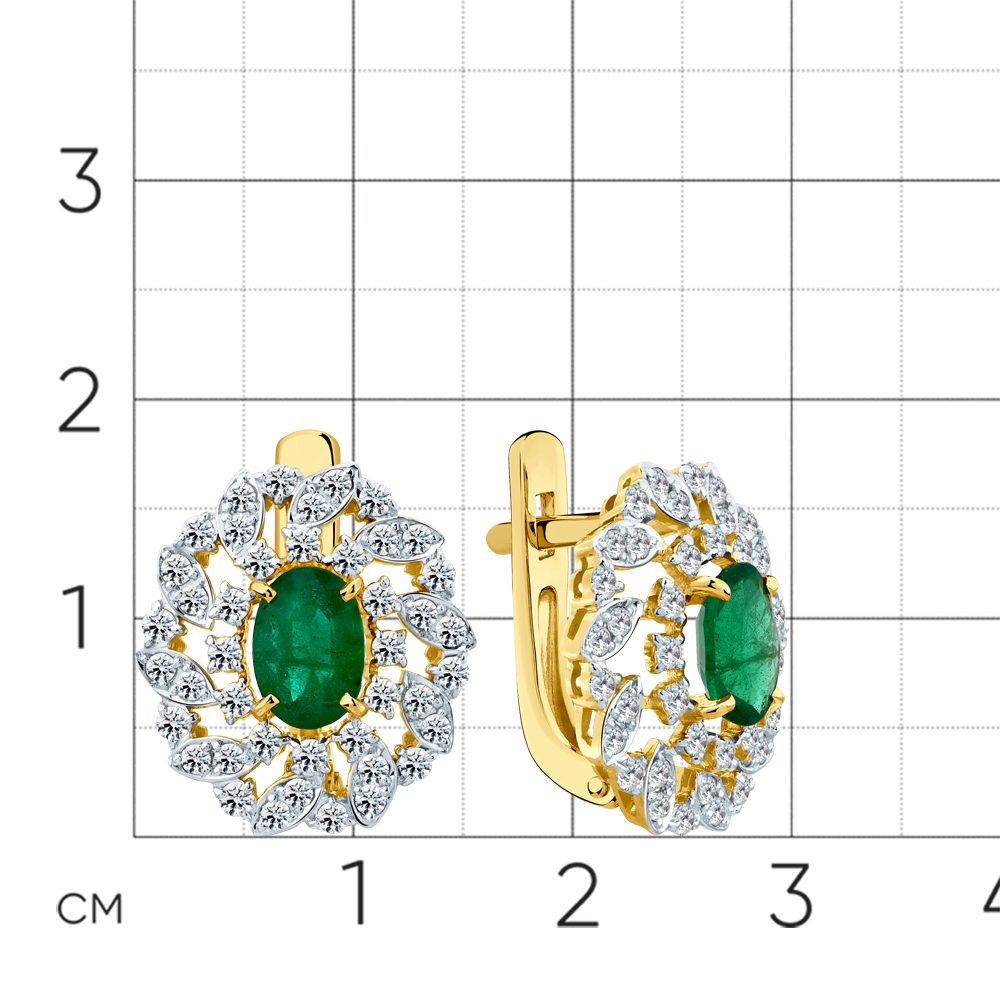 Серьги жёлтое золото 585 пробы со вставками изумруд н., бриллиант арт. 2-309340-00-01