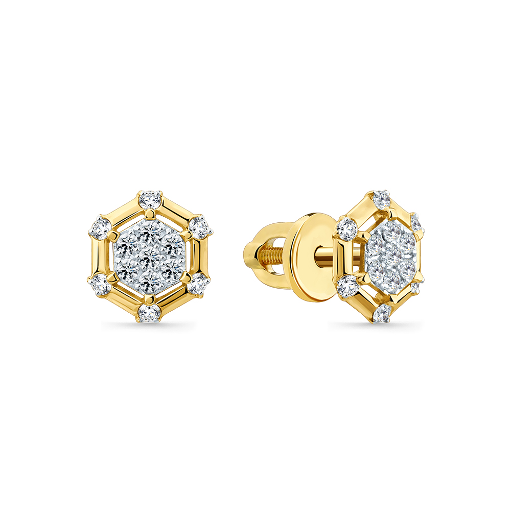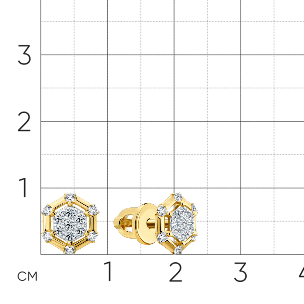Серьги жёлтое золото 585 пробы со вставкой бриллиант арт. 2-302301-00-00