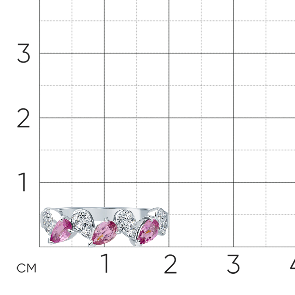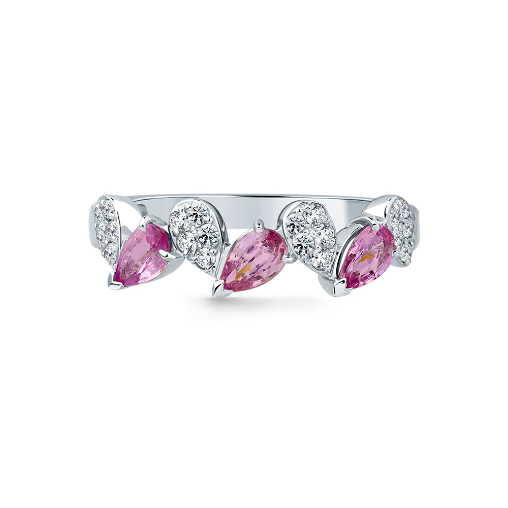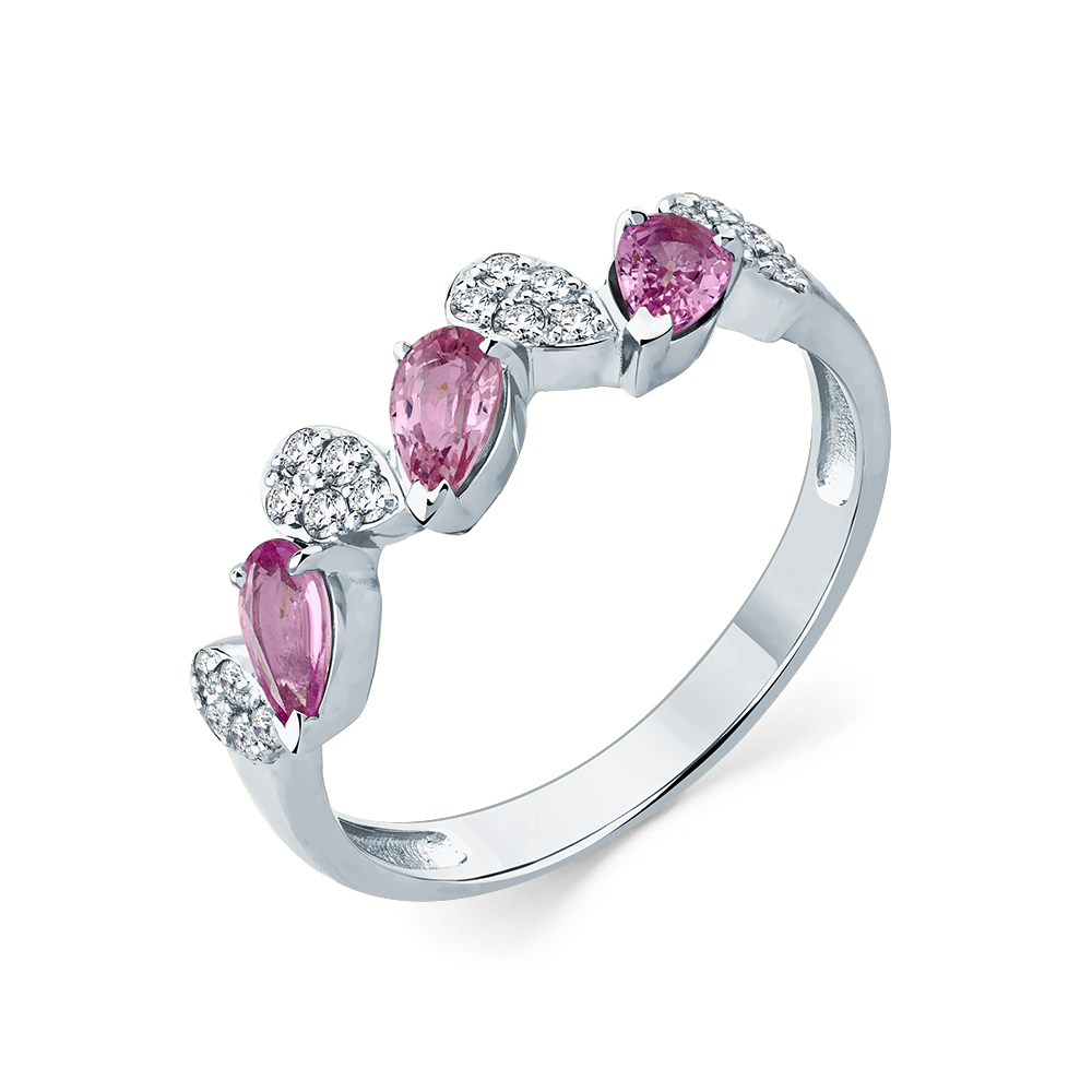 Кольцо белое золото 585 пробы со вставками сапфир облагороженный розовый, бриллиант арт. 1-209363-00-47