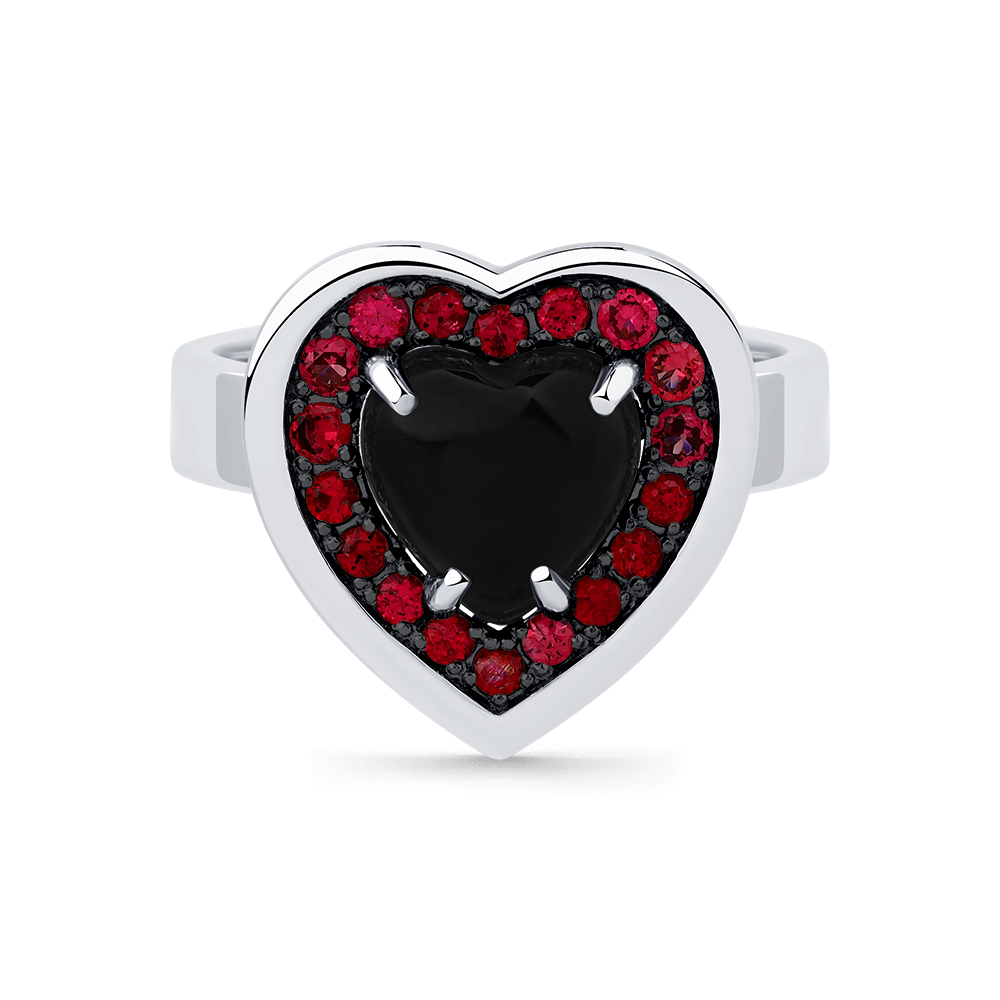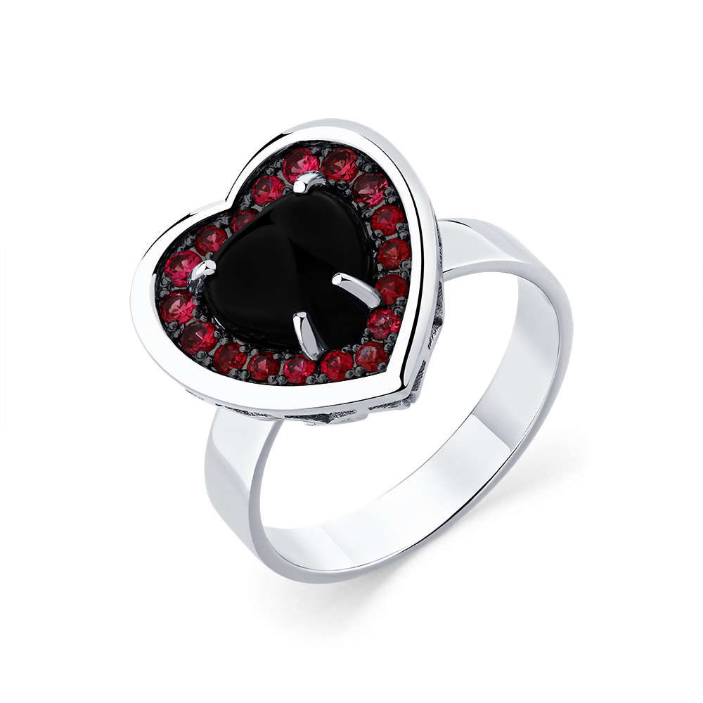 Кольцо белое золото 585 пробы со вставками агат, шпинель красный арт. 1-209361-00-55