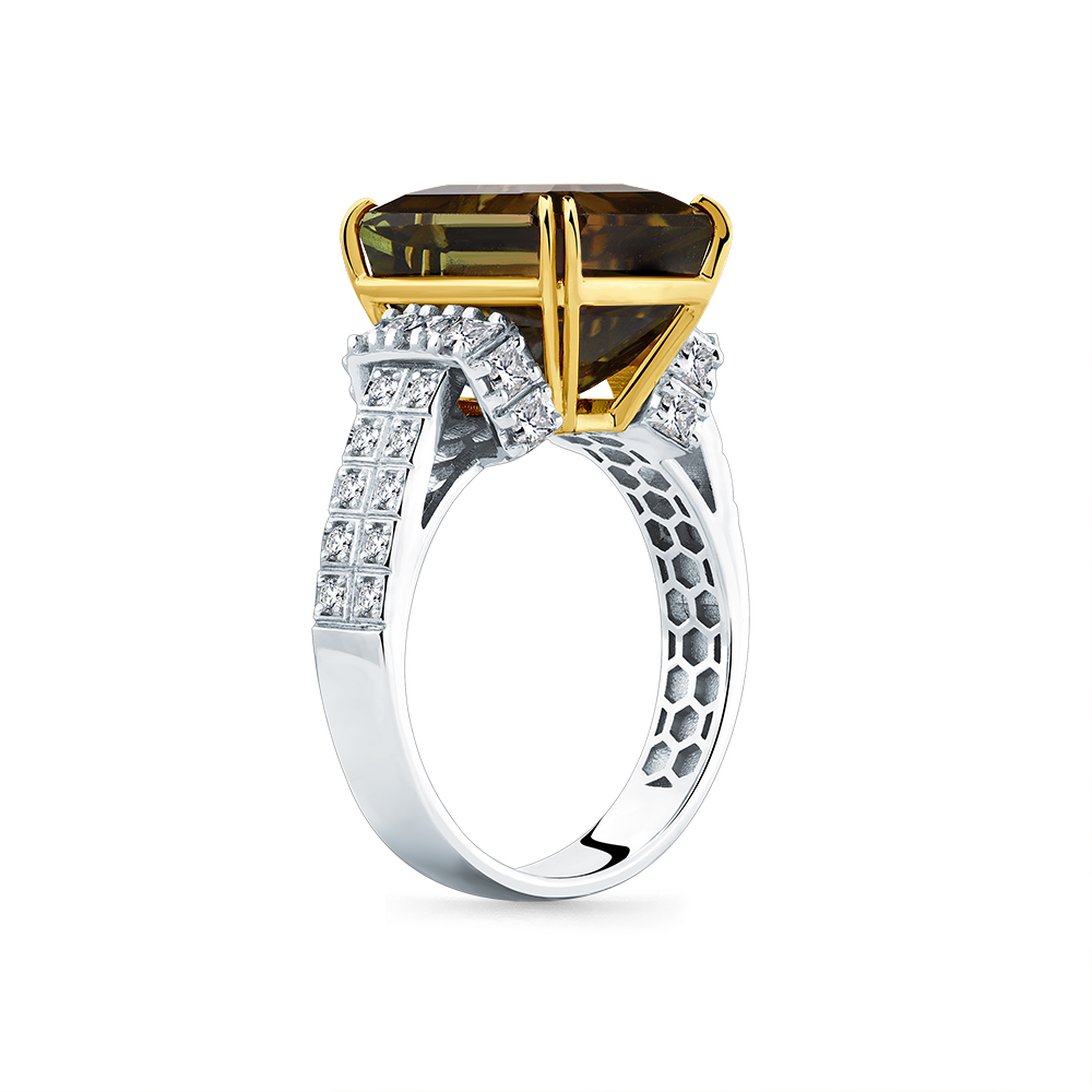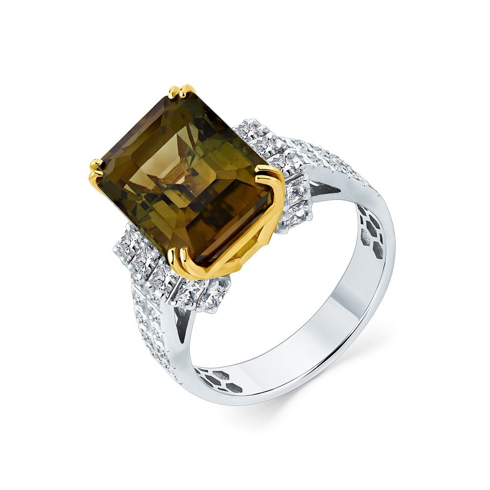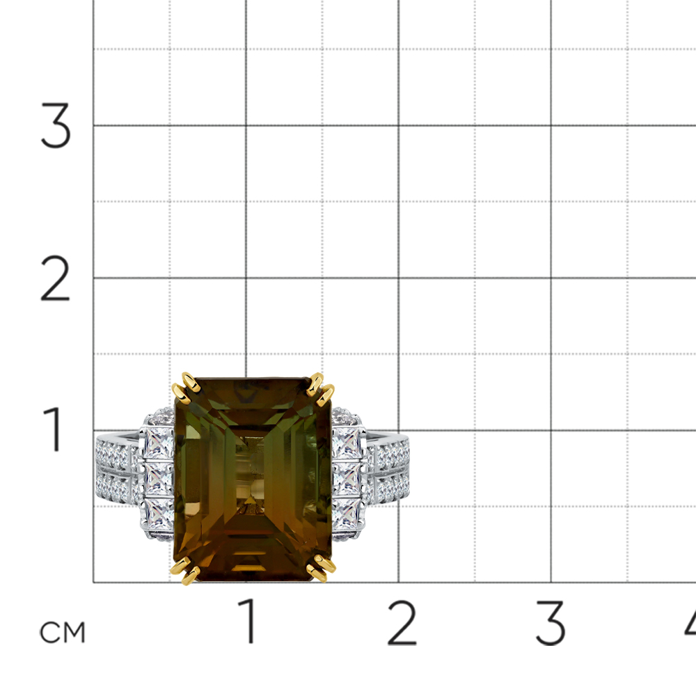 Кольцо жёлтое/белое золото 585 пробы со вставками турмалин, бриллиант