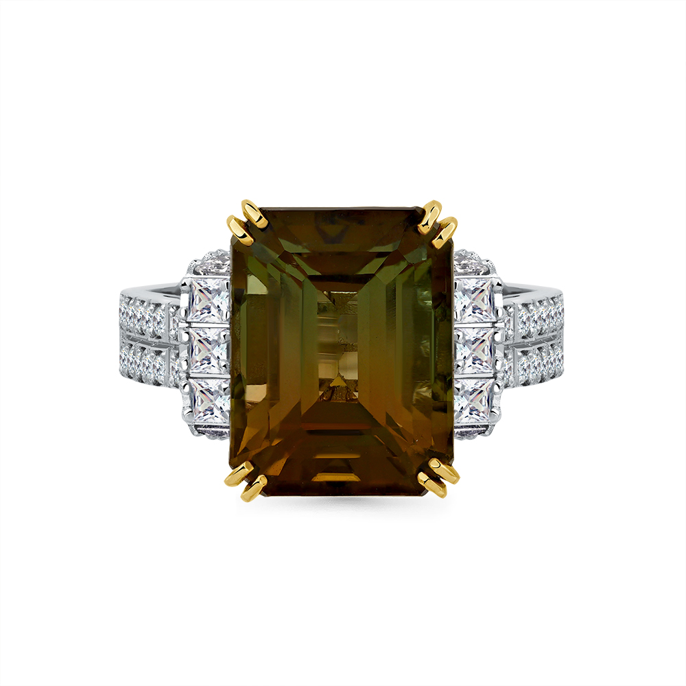 Кольцо жёлтое/белое золото 585 пробы со вставками турмалин, бриллиант арт. 1-509371-00-18