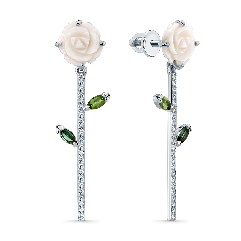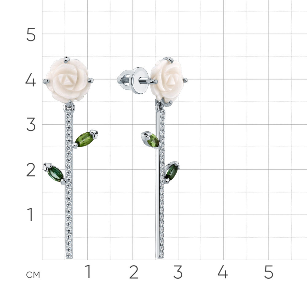 Серьги белое золото 585 пробы со вставками перламутр, турмалин мультиколор, бриллиант арт. 2-202313-00-55