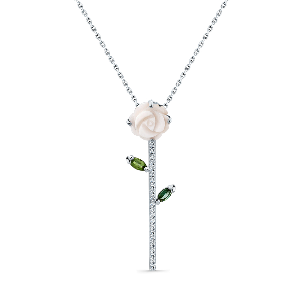Колье белое золото 585 пробы со вставками перламутр, турмалин мультиколор, бриллиант арт. 6-260849-00-55
