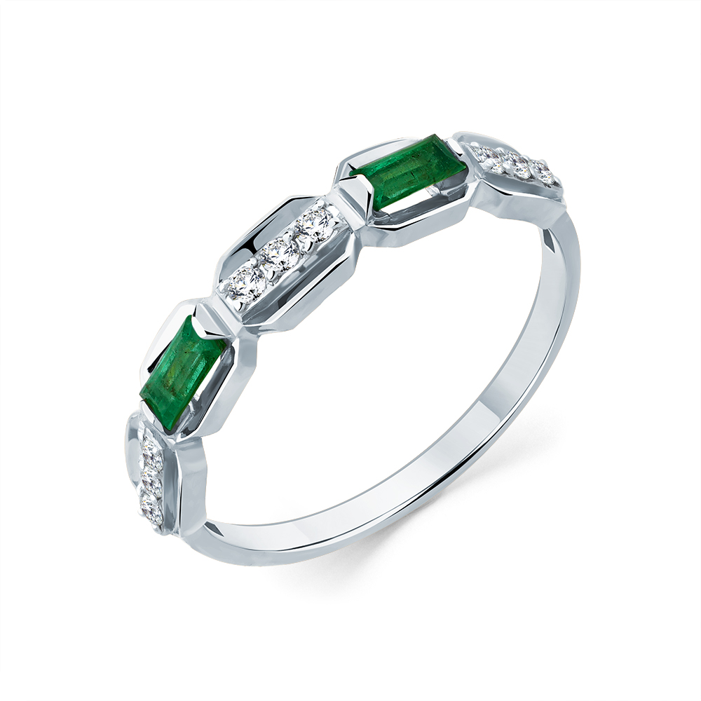 Кольцо белое золото 585 пробы со вставками изумруд н., бриллиант