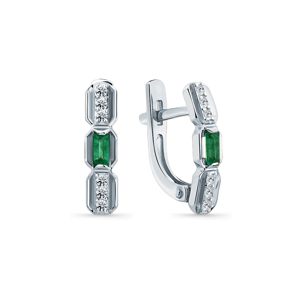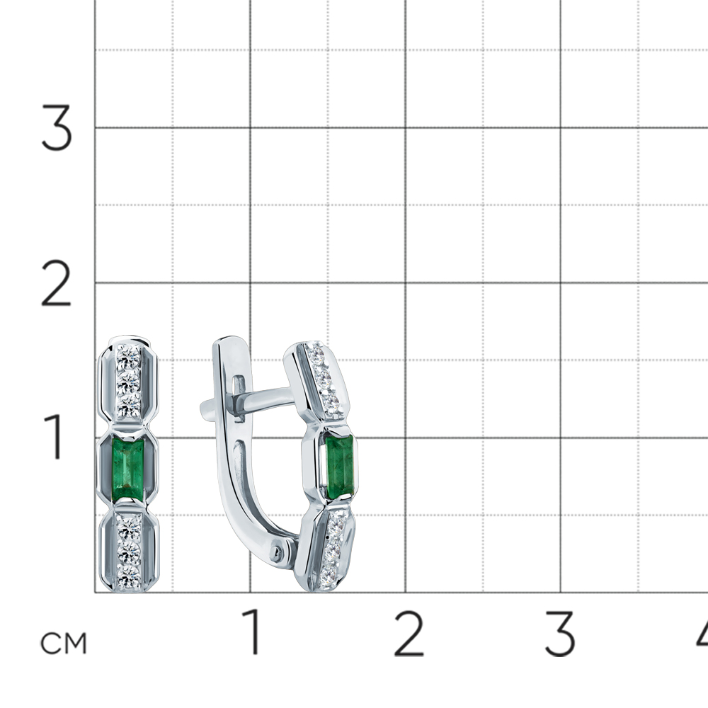 Серьги белое золото 585 пробы со вставками изумруд н., бриллиант арт. 2-209369-00-01