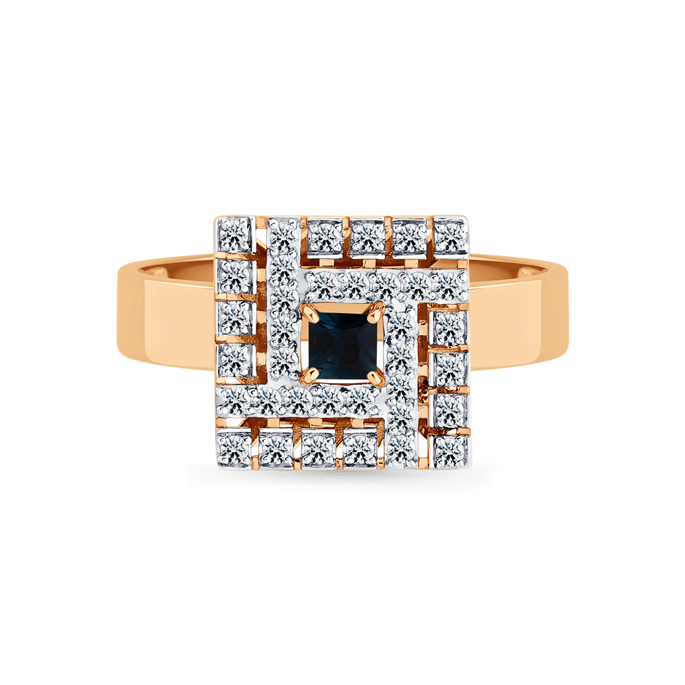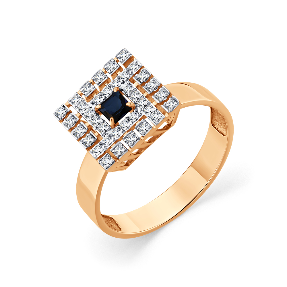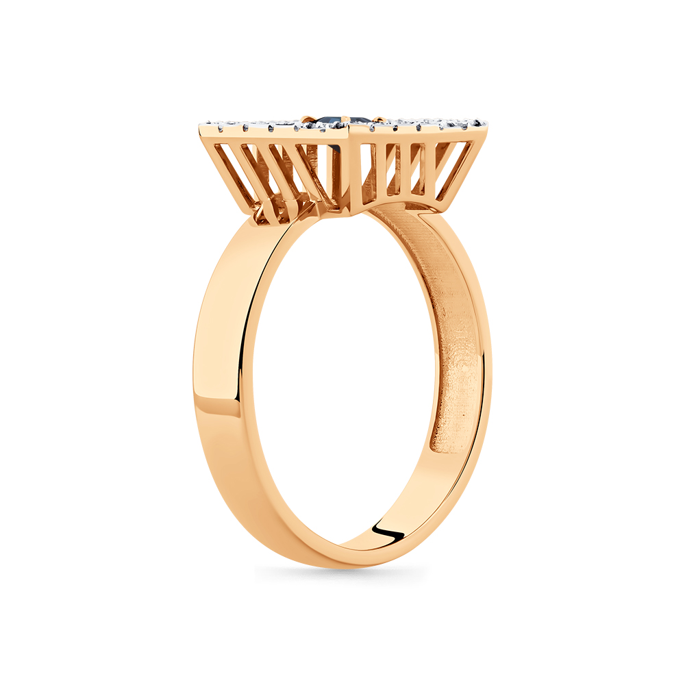 Кольцо красное золото 585 пробы со вставками бриллиант, сапфир н. арт. 1-109341-00-02