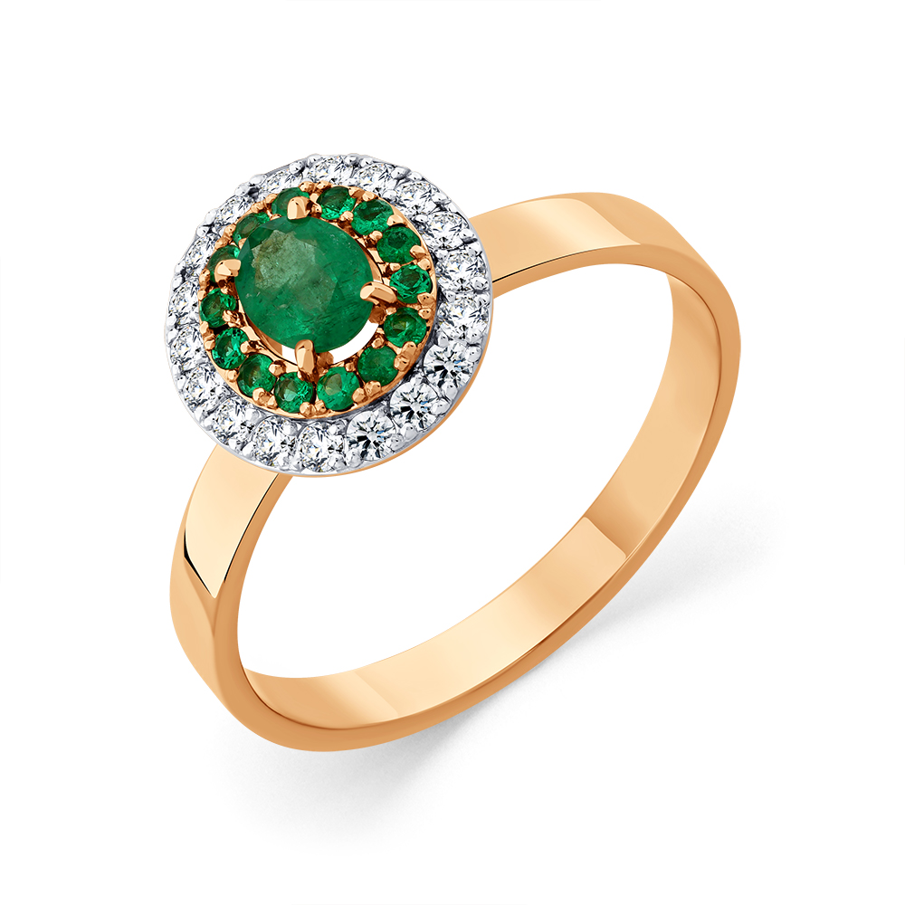 Кольцо красное золото 585 пробы со вставками изумруд н., бриллиант арт. 1-109368-00-01