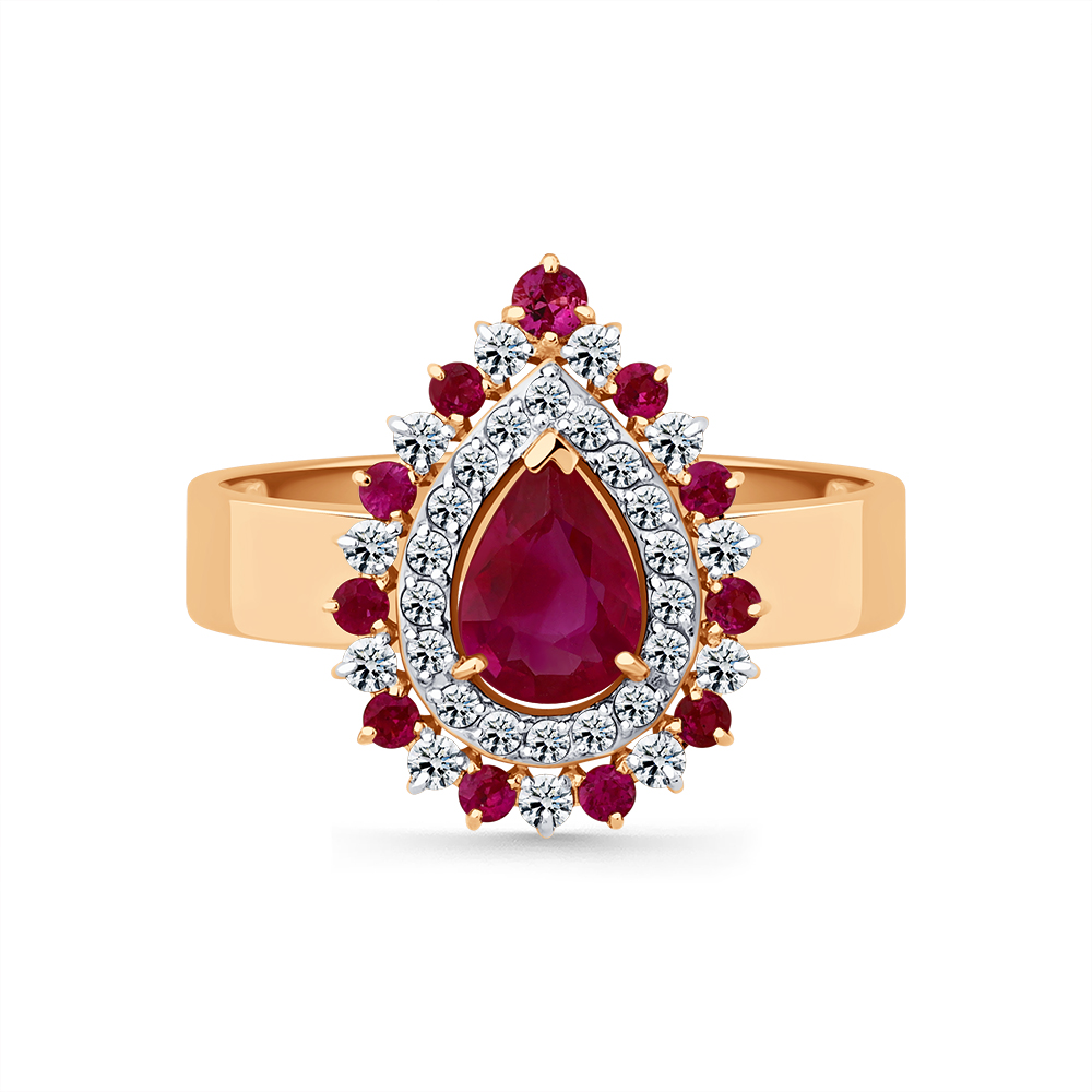 Кольцо красное золото 585 пробы со вставками рубин н., бриллиант арт. 1-109370-00-03
