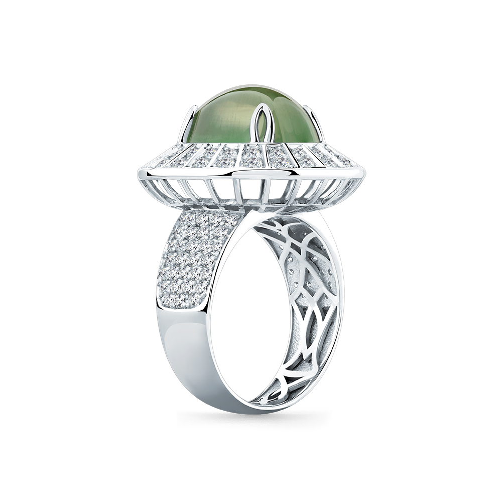 Кольцо со вставками пренит, бриллиант арт. 1-208920-00-76