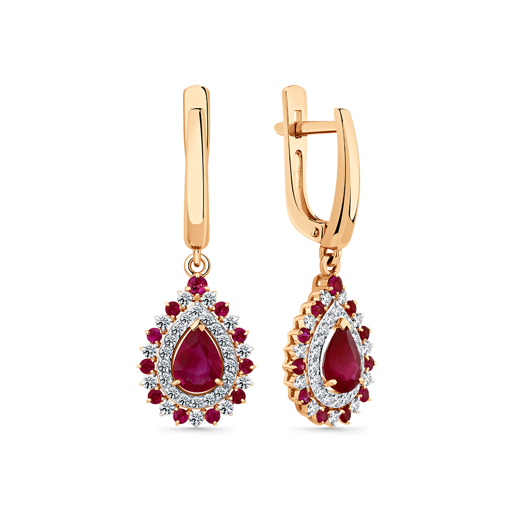 Серьги красное золото 585 пробы со вставками рубин н., бриллиант арт. 2-109370-00-03