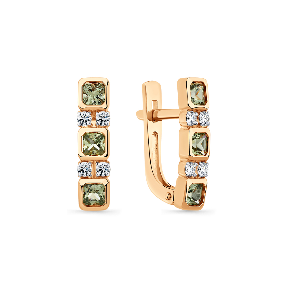 Серьги красное золото 585 пробы со вставками сапфир облагороженный зеленый, бриллиант арт. 2-109364-01-47