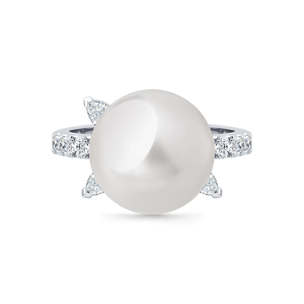 Кольцо белое золото 585 пробы со вставками жемчуг морской, бриллиант арт. 1-209385-00-21