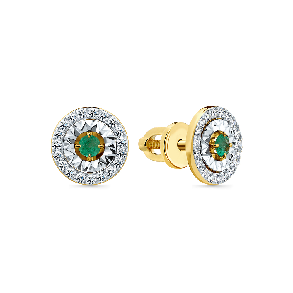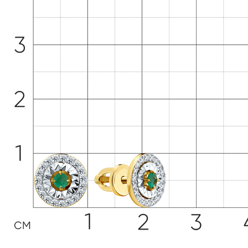 Серьги жёлтое/белое золото 585 пробы со вставками бриллиант, изумруд н. арт. 2-502305-00-01