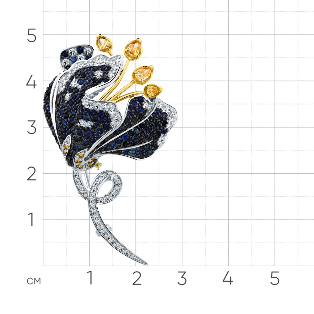 Брошь со вставками сапфир н., бриллиант, бриллиант желтый, бриллиант оранжевый арт. 7-570417-00-55