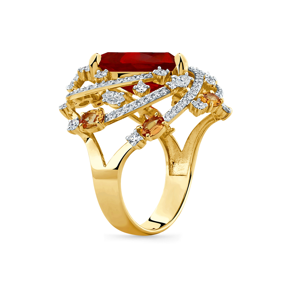 Кольцо жёлтое золото 585 пробы со вставками опал, сапфир облагороженный, бриллиант арт. 1-309384-00-55