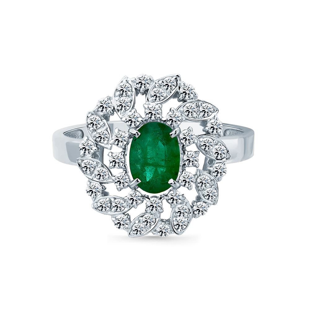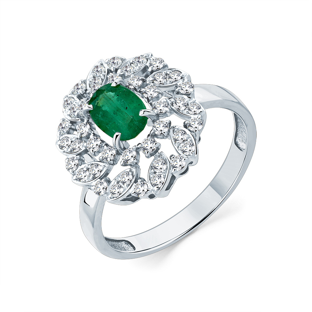 Кольцо белое золото 585 пробы со вставками изумруд н., бриллиант