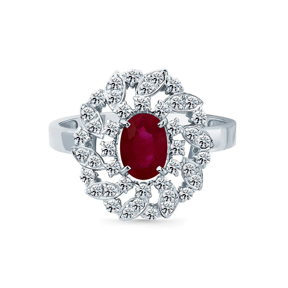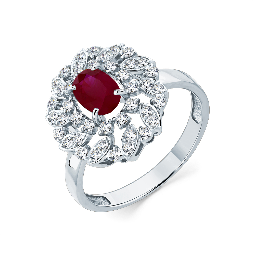 Кольцо белое золото 585 пробы со вставками рубин н., бриллиант