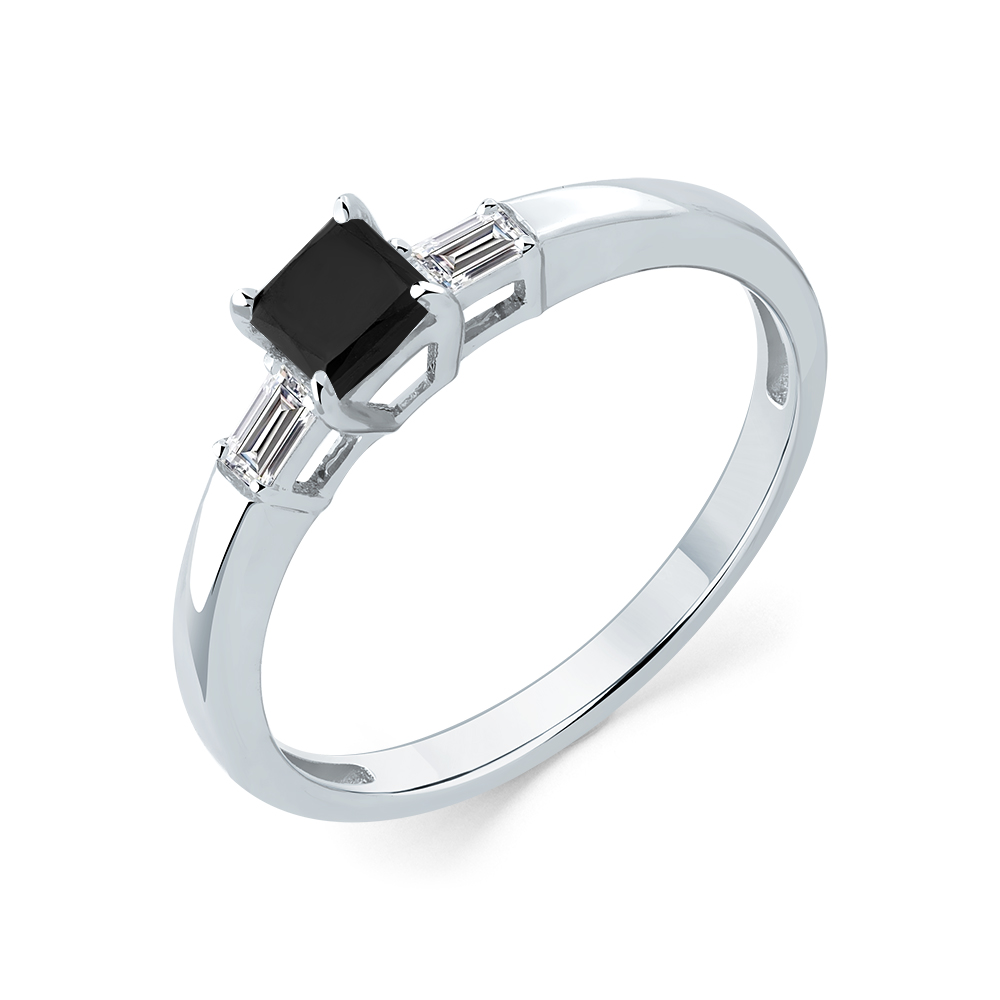 Кольцо белое золото 585 пробы со вставками бриллиант черный, бриллиант арт. 1-209292-01-55
