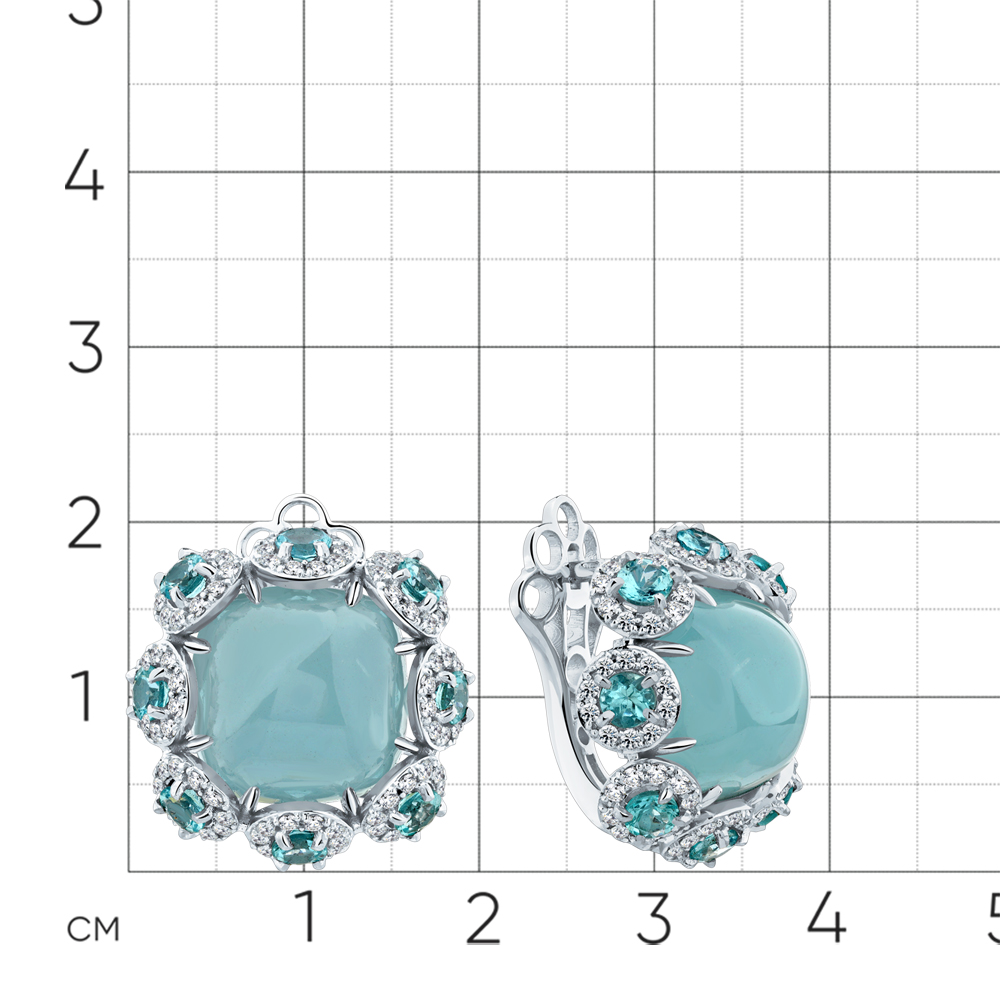Серьги белое золото 585 пробы со вставками аквамарин, апатит, бриллиант арт. 2-209392-00-55