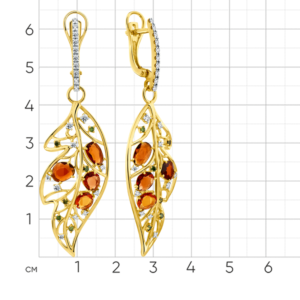 Серьги жёлтое золото 585 пробы со вставками спессартин, бриллиант, бриллиант зеленый, бриллиант облагороженный арт. 2-309391-00-55