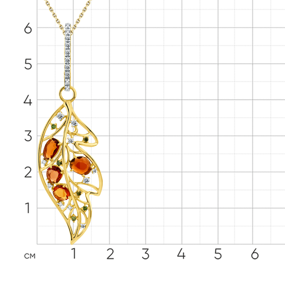 Колье жёлтое золото 585 пробы со вставками бриллиант, бриллиант облагороженный, спессартин, бриллиант зеленый арт. 6-360859-00-55