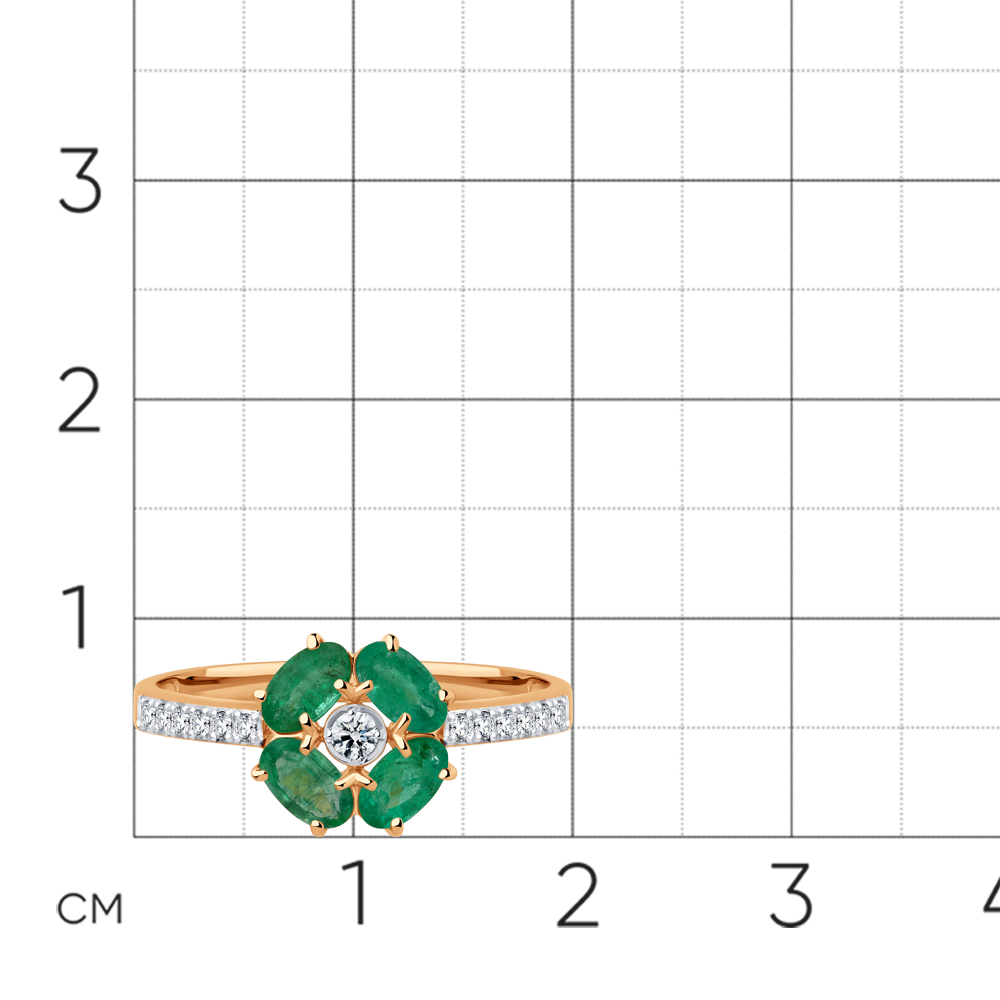 Кольцо красное золото 585 пробы со вставками бриллиант, изумруд н. арт. 1-109366-00-01