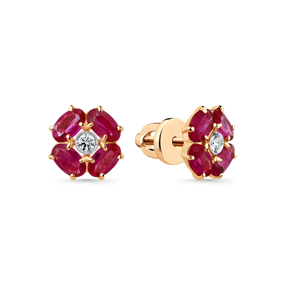Серьги красное золото 585 пробы со вставками бриллиант, рубин н. арт. 2-102314-00-03
