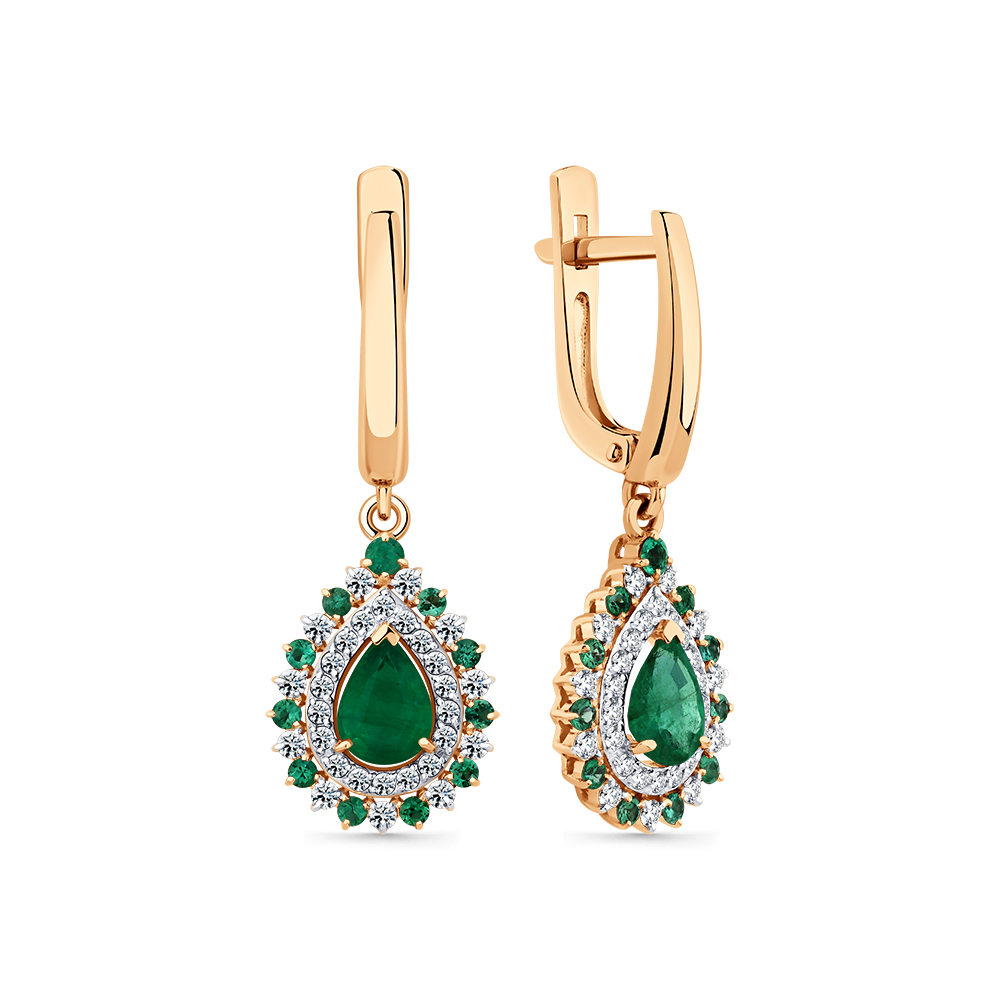 Серьги красное золото 585 пробы со вставками бриллиант, изумруд н. арт. 2-109370-00-01
