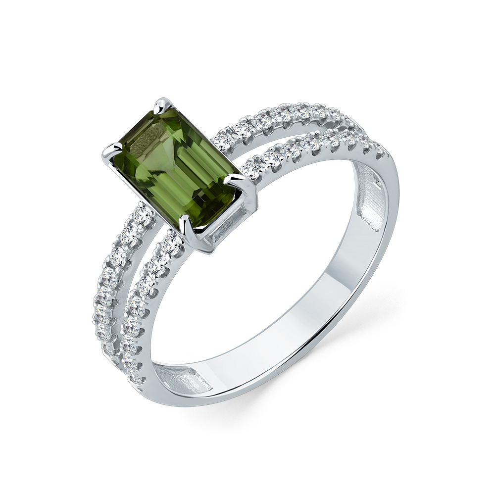 Кольцо белое золото 585 пробы со вставками бриллиант, турмалин арт. 1-209338-01-60