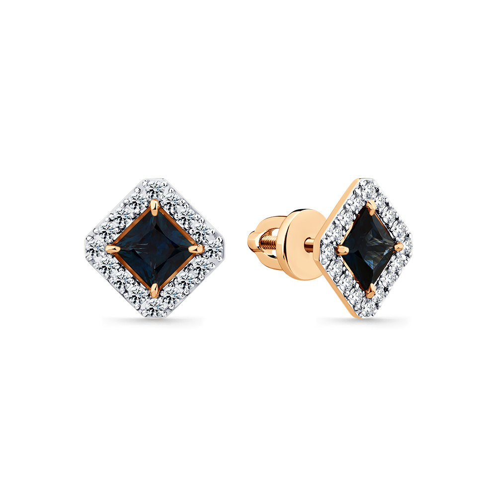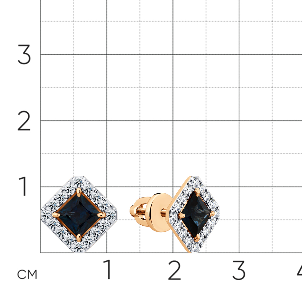 Серьги красное золото 585 пробы со вставками бриллиант, сапфир н. арт. 2-102315-00-02