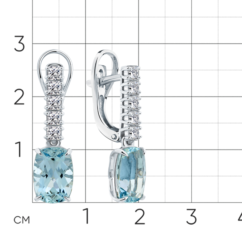 Серьги белое золото 585 пробы со вставками аквамарин, бриллиант